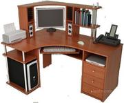 Продам компьютерный стол б/у, угловой с надстройкой, выдвижными ящиками и стелажем для книг. ДСП, цвет ольха, хорошее состояние..